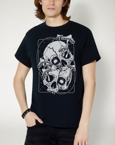 Show off your dark side with this black Overgrown t shirt by artist von Kowen! This tee features two skulls and some trippy mushrooms growing out of them. This stylish and bold look is the perfect way to capture everyone's attention. Officially licensed Crewneck Short sleeves Material: Cotton Care: Machine wash; tumble dry low Imported This shirt is Unisex Sizing only For a fitted look, order one size smaller than your normal size Note: This item is print to order and may have a 1 to 2 day extra processing time.