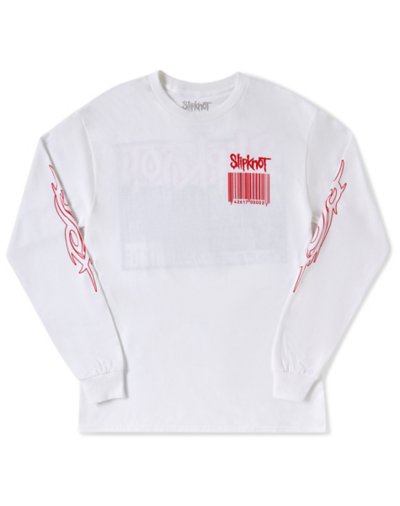 Unleash your inner metalhead with this White Slipknot Barcode Long Sleeve T Shirt! With its long sleeves, it's perfect for rocking out at concerts or adding a touch of metal to your everyday wardrobe. Get ready to headbang in style! Officially licensed Exclusively at Spencer's Crewneck Long sleeves Tagless Material: Cotton Care: Machine wash Imported This shirt is Unisex Sizing only For a fitted look, order one size smaller than your normal size.