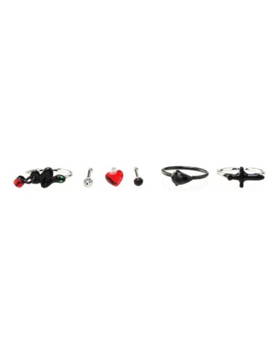 Buy Multi-Pack CZ Snake Heart Bone Nose Rings and Hoop Nose Rings 6 Pack for $19.99 at @ Spencersonline.com