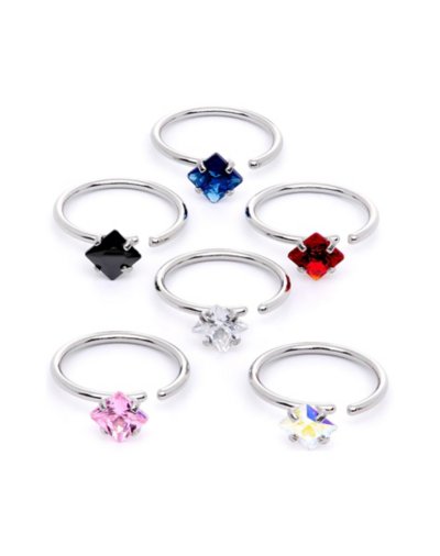 Multi-Pack Multi-Color Square CZ Hoop Nose Rings 6 Pack - Gauge