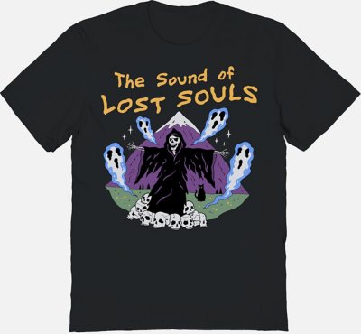 Give your casual wardrobe a fun, gothic flair with this officially licensed The Sound of Lost Souls T Shirt! Suit up in this stylish tee and you'll be the best-dressed person around. Officially licensed Crew neck Short sleeves Material: Cotton Care: Machine wash; tumble dry low Imported This tee is Unisex Sizing only For a fitted look, order one size smaller than your regular size.