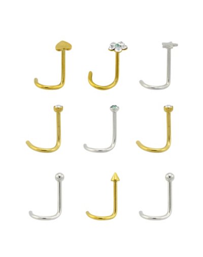 Includes: 9 Screw nose rings Piercing Type: Nose Barbell Material: 316L Surgical steel Accent Material: 316L Surgical steel Gauge: Gauge/0.8mm Length: 5/16"/8mm Stone type: Cubic zirconia Jewelry Care: Clean with antibacterial soap and warm water Piercing Care: Clean with H2Ocean Aftercare Spray (sold separately) or saline solution Imported Note: Do not use rubbing alcohol to clean jewelry. Normal alcohol consumption and/or mouthwash may accelerate wear and tear Do not over-thread or apply excess pressure when adding/removing beads as breakage could occur Surgical steel may contain trace amounts of nickel Wear in healed pierc.