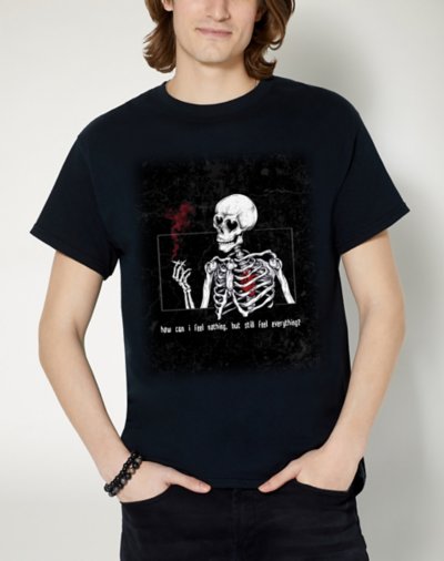 Add a fresh new look to your casual outfit by adding this Feel Nothing But Everything T Shirt to your casual wardrobe. This awesome tee features a skeleton with heart eyes and is sure to have you looking and feeling your best. Officially licensed Exclusively at Spencers Crewneck Short sleeves Material: Cotton Care: Machine wash; tumble dry low Imported This tee is Unisex Sizing only For a fitted look, order one size smaller than your normal size Note: This item is print to order and may have a 1 to 2 day extra processing time.