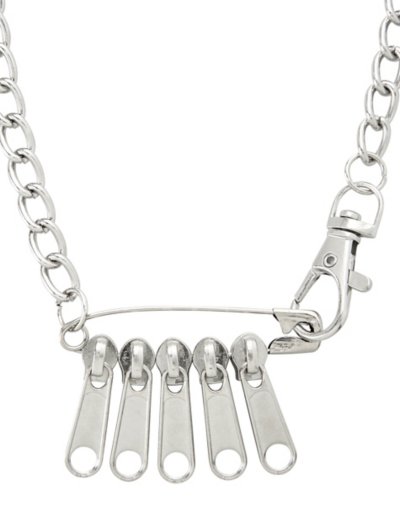 Buy Safety Pin and Zipper Chain Necklace for $14.99 at @ Spencersonline.com
