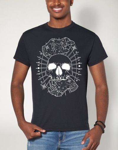 Put on some spooky style when you wear this black and white t shirt with artwork by von Kowen! Everyone will want to get a closer look at this powerful and intriguing imagery. Officially licensed Exclusively at Spencer's Crewneck Short sleeves Material: Cotton Care: Machine wash; tumble dry low Imported This shirt is Unisex Sizing only For a fitted look, order one size smaller than your normal size Note: This item is print to order and may have a 1-2 day extra processing time.