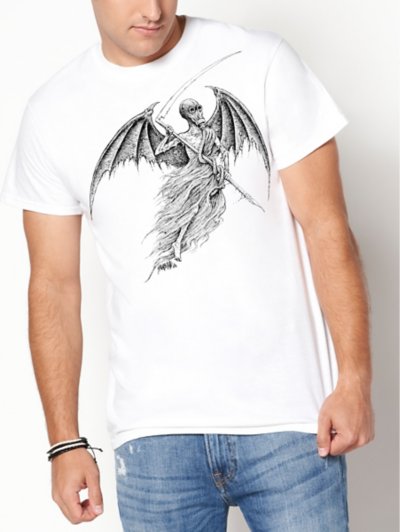 Add a powerful look to your casual wardrobe with this eye-catching Winged Death T Shirt. This awesome tee features the work of Sawblade666 and is sure to have everyone looking your way. Officially licensed Exclusively at Spencers Crewneck Short sleeves Material: Cotton Care: Machine wash; tumble dry low Imported This tee is Unisex Sizing only For a fitted look, order one size smaller than your normal size Note: This item is print to order and may have a 1 to 2 day extra processing time.