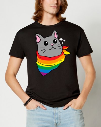 Hey cool cats, ready to celebrate Pride? This soft t shirt features a wide-eyed cat wearing a rainbow scarf. Wear this graphic tee to your next Pride event (and every other day, too). Crewneck Short sleeves Material: Cotton Care: Machine wash; tumble dry low Imported This shirt is Unisex Sizing only For a fitted look, order one size smaller than your normal size Note: This item is print to order and may have a 1 to 2 day extra processing time.