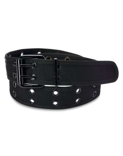 Upgrade your style easily when you put on this black double eyelet belt! This black belt goes with any outfit and is sure to get you plenty of compliments whenever you wear it. Adjustable Material: Polyester Buckle closure Imported.