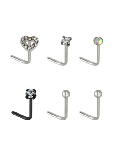 Multi-Pack CZ Heart L-Bend Nose Rings 6 Pack - Gauge