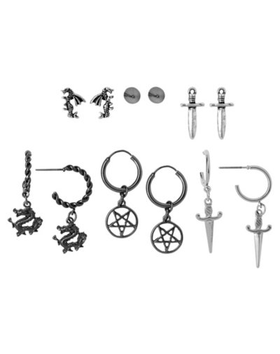 Buy Multi-Pack Pentagram and Dragon Hoop and Stud Earrings 6 Pair for $12.99 at @ Spencersonline.com