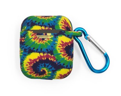 Your favorite tunes will always be handy when you use this tie dye earbud case. Clip it to your waist or bag for easy access with the included carabiner. You'll never have to worry about losing or damaging your earbuds when you use this handy case. Exclusively at Spencer's Dimensions: 2.36"H x 2.36"W x 0.95"D Material: Silicone, metal Care: Spot clean Imported.