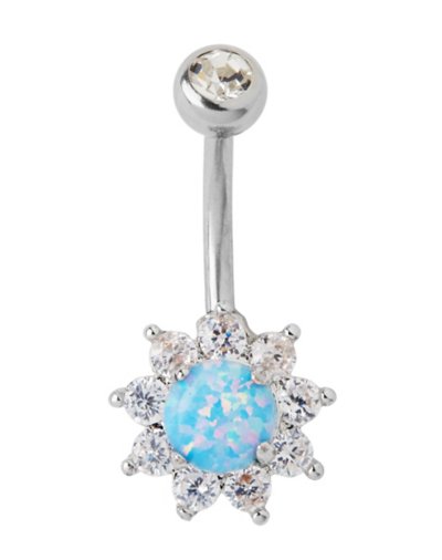 Piercing Type: Belly Barbell Material: 316L Surgical steel Accent Material: Metal alloy Gauge: Gauge/1.6mm Length: 10mm Stone Type: Cubic zirconia Ball Size: 5mm Threaded closure Jewelry Care: Clean with antibacterial soap and warm water Piercing Care: Clean with H2Ocean Aftercare Spray (sold separately) or saline solution Imported Note: Do not use any harsh, alcohol-based chemicals as this may cause tarnishing Do not over-thread or apply excess pressure when adding/removing beads as breakage could occur Surgical steel may contain trace amounts of nickel.