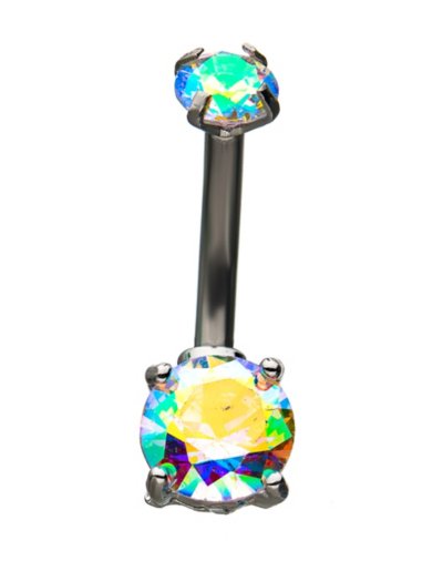 CZ Aurora Borealis Effect Belly Ring - 14 Gauge