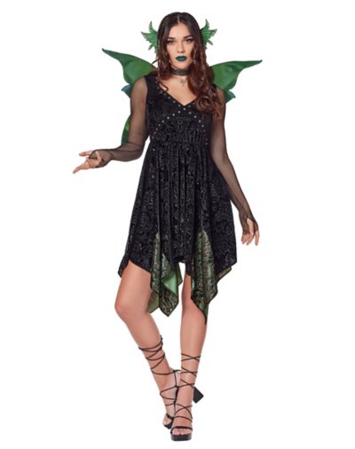 Youll be looking fairy good this Halloween when you dress up in this grunge fairy costume! This costume is the perfect mix of mystical and mysterious. The whimsical dress is paired with light-up wings, a woodland headband, and a matching choker. Officially licensed Includes: Dress Light-up wings Headband Choker Material: Polyester, spandex Care: Spot clean Imported Note: Shoes sold separately.