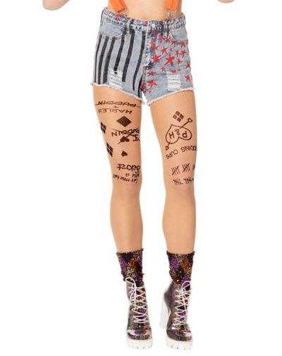 Your Harley Quinn cosplay can't be complete without a couple of tattoos! You'll look all tatted up just like Harley herself once you slip on this pair of officially licensed Harley Quinn tights. Officially licensed Material: Nylon Care: Hand wash cold Imported.