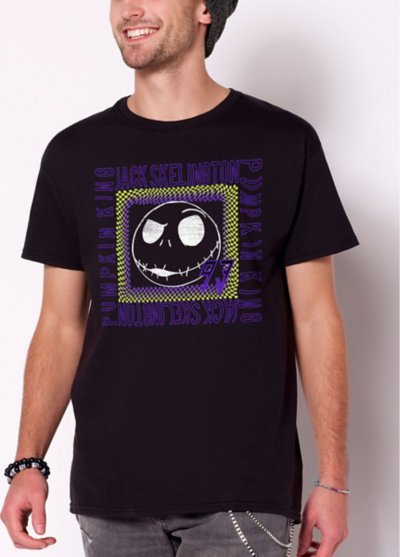 Everyone will know what youre binging when you show off your taste in movies with this officially licensed Jack Skellington SkateT Shirt. Suit up in this stylish tee and youll always be showing your fandom. Officially licensed Crewneck Short sleeves Material: Cotton Care: Machine wash; tumble dry low Imported This tee is Unisex Sizing only For a fitted look, order one size smaller than your normal size Note: This item is print to order and may have a 1 to 2 day extra processing time.