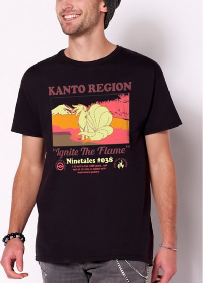 Ignite the flame with Ninetales! This black tee features a fire type fan-favorite with vibrant colors and quick Pokmon facts. Add this Ninetales Kanto Region t shirt to your collection to add supernatural power to your style. Officially licensed Crewneck Short sleeves Material: Cotton Care: Machine wash; tumble dry low Imported This shirt is Unisex Sizing only For a fitted look, order one size smaller than your normal size.