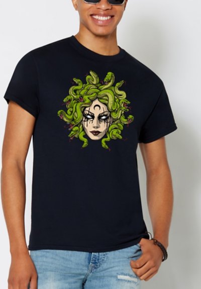 Add a fresh new look to your casual outfit by adding this Goddess Medusa T Shirt to your casual wardrobe. This awesome tee features the work of Akasha Shrine and is sure to have you looking and feeling your best. Officially licensed Exclusively at Spencers Crewneck Short sleeves Material: Cotton Care: Machine wash; tumble dry low Imported This tee is Unisex Sizing only For a fitted look, order one size smaller than your normal size Note: This item is print to order and may have a 1 to 2 day extra processing time.