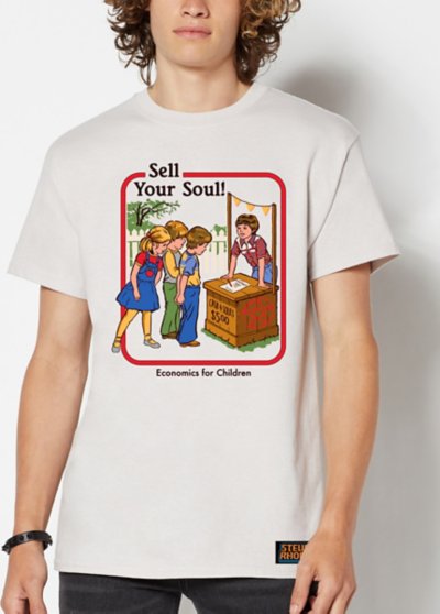 Teach your kids about smart money moves in this Steven Rhodes Sell Your Soul t shirt! Featuring great advice and cool graphics, this t shirt is a wise investment. Officially licensed Crewneck Short sleeves Material: Cotton Care: Machine wash; tumble dry low Imported This shirt is Unisex Sizing only For a fitted look, order one size smaller than your normal size Note: This item is print to order and may have a 1-2 day extra processing time.