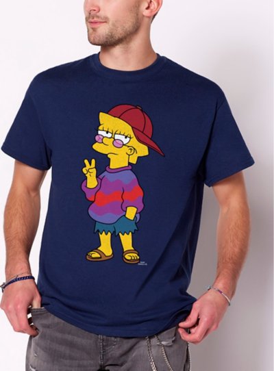 Lisa Simpson gets a cool makeover in this navy graphic tee! Instantly make any outfit cooler when you rock this Lisa Simpson t shirt. Peace out. Officially licensed Crewneck Short sleeves Material: Cotton Care: Machine wash; tumble dry low Imported This shirt is Unisex Sizing only For a fitted look, order one size smaller than your normal size Note: This item is print to order and may have a 1 to 2 day extra processing time.