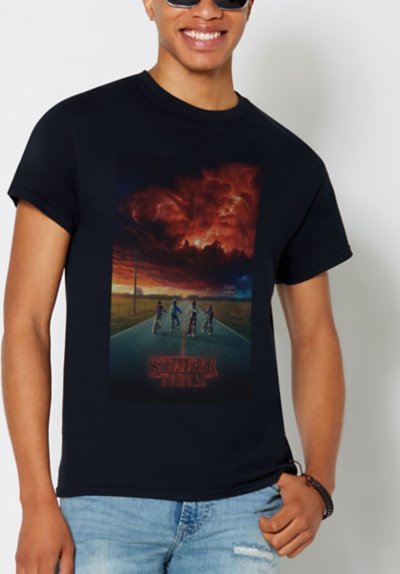 Show off a classic moment from your favorite show in this official Stranger Things t shirt! This bold graphic tee is the perfect way to share your fandom and add some major TV style to your casual wardrobe. Officially licensed Crewneck Short sleeves Material: Cotton Care: Machine wash; tumble dry low Imported This shirt is Unisex Sizing only For a fitted look, order one size smaller than your normal size Note: This item is print to order and may have a 1-2 day extra processing time.