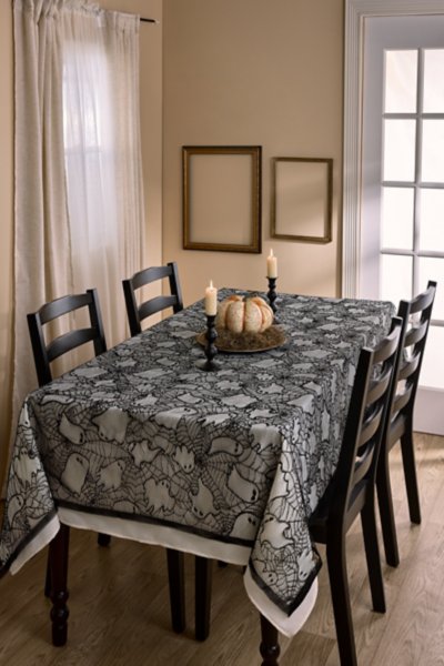 Greet your Halloween dinner guests with a little horror this season. ThisLace Ghost Tablecloth is the perfect way to adorn your dining room table for all your monster mashes and bashes. Dimensions: 84 H x 60 W Material: Polyester Care: Machine wash Imported.
