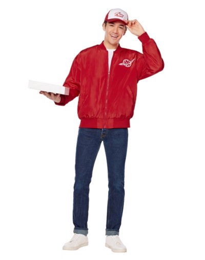 Show off your love for pizza and Toy Story at the same time when you get this officially licensed Pizza Planet costume kit! Featuring an iconicjacket and a matching hat, this costume is perfect for any Toy Story fan. Officially licensed Includes: Jacket Hat Crewneck Long sleeves Zipper closure Material: Polyester, cotton Care: Spot clean Imported Note: Pants, shoes, and prop sold separately.