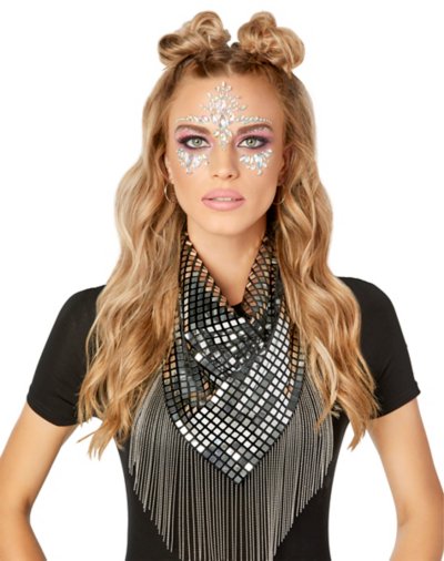 Make your costume complete with this Space Cowgirl Bandana! This stylish fringebandana will look dazzling around your neck as it catches the light and makes all the earthlings pay attention to you. Material: Polyester Care: Spot clean Imported.