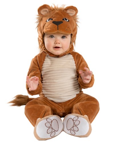 Rawr! Your little one will look so cute in this lion cub costume on Halloween! The one-piece costume is soft and cozy, which will help your baby stay warmer on chilly nights. The included padded headpiece features lion characteristics that will make your baby look super authentic! Complete the look with the colorful paw print bandana, and youll be ready for the perfect Halloween celebration! Includes: Jumpsuit Headpiece Bib Crewneck Long sleeves Velcro closure Inseam: About 9.5 Material: Polyester Care: Spot clean Imported.