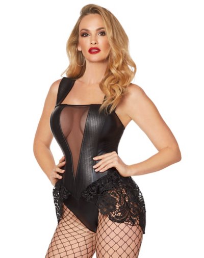 AdultFaux Leather and Lace Bodysuit by Spirit Halloween