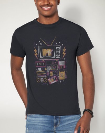 Music lovers, show off your favorite channel with this official MTV t shirt! This stylish graphic tee featuring lightning bolts and tapes, disks and other devices and is sure to be a popular part of your casual wardrobe. Officially licensed Crewneck Short sleeves Material: Cotton Care: Machine wash; tumble dry low Imported This shirt is Unisex Sizing only For a fitted look, order one size smaller than your normal size Note: This item is print to order and may have a 1-2 day extra processing time.