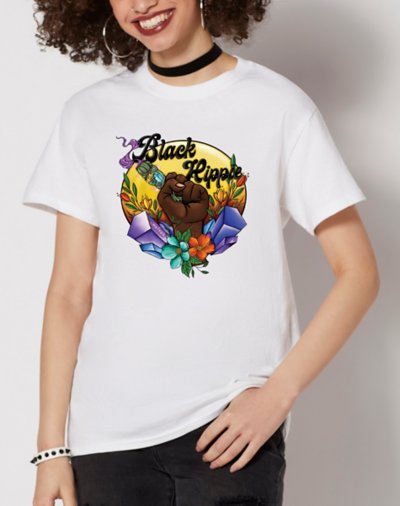 Celebrate Black progress, solidarity, and beauty with this ColorTripz t shirt! This Black Hippie t shirt features a fist rising in power from a bed of crystals and flowers. Add a work of art to your wardrobe with this ColorTripz t shirt. Crewneck Short sleeves Material: Cotton Care: Machine wash; tumble dry low Imported Regular fit Note: This tee is in Unisex Sizing only For a fitted look, order one size smaller than your normal size Note: This item is print to order and may have a 1-2 day extra processing time.