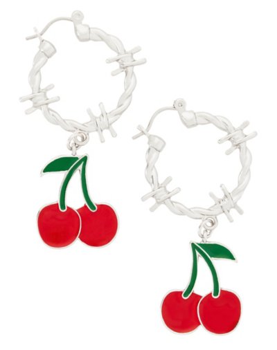 Buy Barbed Wire Cherry Hoop Earrings for $12.99 at @ Spencersonline.com