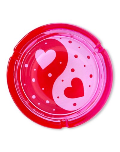 Feel the love and smoke in the air when you decorate with this Heart Yin Yang Ashtray. This ashtray is a perfect gift for any valentine who loves to get their smoke on! Dimensions: 1.7" H x 5" W x 5" W Material: Glass Care: Spot clean Imported.