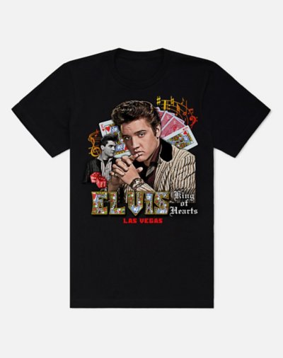 Show off the King of Hearts with this Elvis Presley Las Vegas t shirt! This stylish graphic tee is the perfect way to let everyone know your classic musical taste. Officially licensed Crewneck Short sleeves Material: Cotton Care: Machine wash; tumble dry low Imported This shirt is Unisex Sizing only For a fitted look, order one size smaller than your normal size.