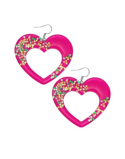 Buy Pink Acrylic Glitter Heart Dangle Earrings for $12.99 at @ Spencersonline.com