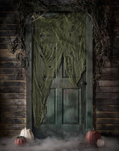 It looks like your house has been visited by the Swamp Thing in thisLoose Weave Fabric. For that freshly slimed look, go gooey green with this great nylon Halloween dcor! Product Dimensions: Length: 117.6" Width: 30" Material: Nylon Care: Spot clean Imported Note: Recommended for use in covered areas.