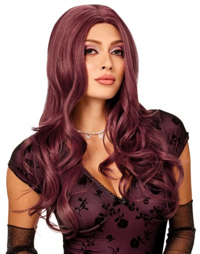 Looking to put the perfect finishing touch on your Halloween look? This DustyCurls Wig has got you covered! This wig's luxurious reddish-purple tresses are sure to turn heads wherever you find yourself this Halloween. Heat resistant up to 325 degrees Fahrenheit Length: About 26.8" from scalp to longest point Material: Polyester Care:Hand wash with cold water and mild shampoo; air dry Imported.