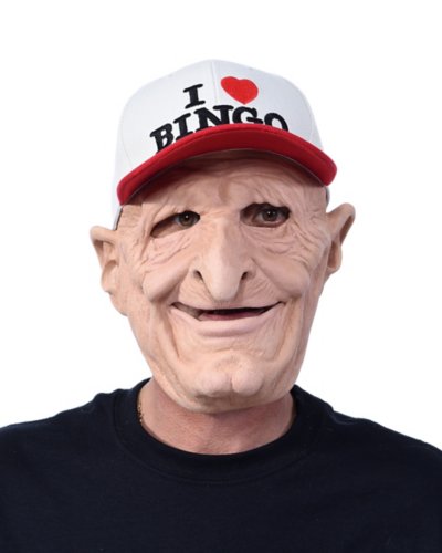 Been waiting all week for bingo night? We've got the perfect Halloween accessory for you. Complete your old-school look when you wear this hilarious Bingo Old Man Full Mask! Dimensions: Width: About 7" at widest point Height: About 11" at highest point Depth: About 8" Material: Latex, polyester Care: Spot clean Imported WARNING: Do not use if allergic to latex.