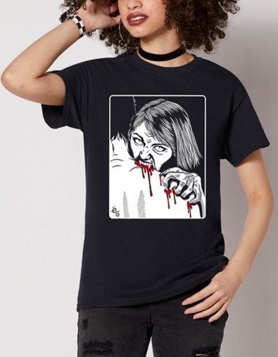 Love all things bloodthirsty? Give your wardrobe a touch of horror with this bite graphic tee with artwork by Danger Stranger! This bold black-and-white t shirt is sure to turn heads. Officially licensed Crewneck Short sleeves Material: Cotton Care: Machine wash; tumble dry low Imported This shirt is Unisex Sizing only For a fitted look, order one size smaller than your normal size Note: This item is print to order and may have a 1 to 2 day extra processing time.