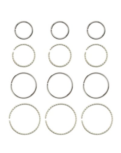 Buy Silvertone Hoop Nose Rings 6-13mm 12 Pack - Gauge for $31.99 at @ Spencersonline.com
