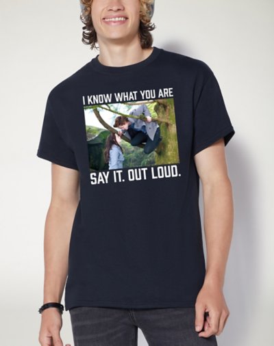 Are you #TeamEdward or #TeamJacob? Transport yourself to the heart of Forks when you're wearing thisI know What You Are Twilight T Shirt. This cozy tee features an iconic scene between Bella dn Edward and is sure to show off your Twilight fandom! Exclusively at Spencer's Officially licensed Crewneck Short sleeves Tagless Regular fit Material: Cotton Care: Machine wash; tumble dry low Imported This shirt is Unisex Sizing only For a fitted look, order one size smaller than your normal size.