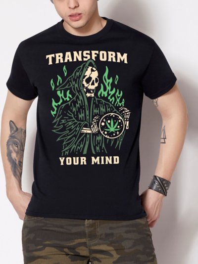 See what's in store for you when you're wearing this exclusiveTransform Your Mind Crystal Ball T Shirt. This trippy tee features a flaming reaper with a weed leaf crystal ball. He senses good vibes and great times in your future! Exclusively at Spencer's Crewneck Short sleeves Material: Cotton Care: Machine wash; tumble dry low Imported This shirt is Unisex Sizing only For a fitted look, order one size smaller than your normal size Note: This item is print to order and may have a 1-2 day extra processing time.
