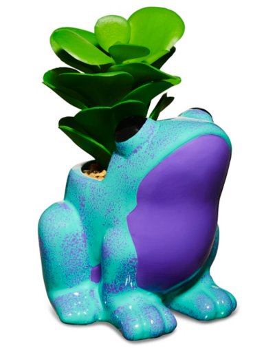 Spice up any dorm, room, or space with this adorableFrog Planter. This blue and purple speckled planter is the perfect way tobrighten up the room with some greenery and show off your green thumb. Exclusively at Spencers Dimensions: 5" H x 3.3 W x 3.2 D Material: Dolomite Care: Spot clean Imported.