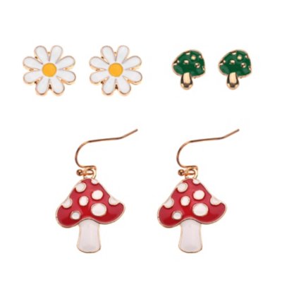 Multi-Pack Flower and Mushroom Dangle and Stud Earrings - 3 Pack