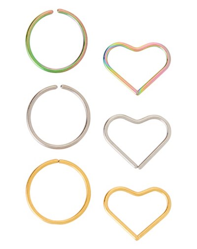 Multi-Pack Round and Heart Hoop Nose Rings 6 Pack - Gauge