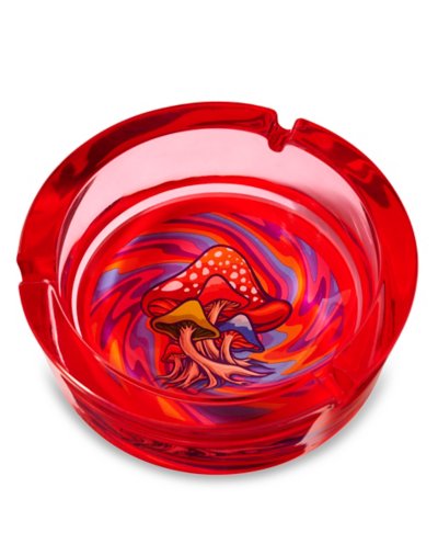 Put out your smokes in style with this red mushroom swirl glass ashtray! This ashtray will add some bold color to your home. Dimensions: 1.75" H x 5" W x 5" D Material: Glass Care: Hand wash Imported.