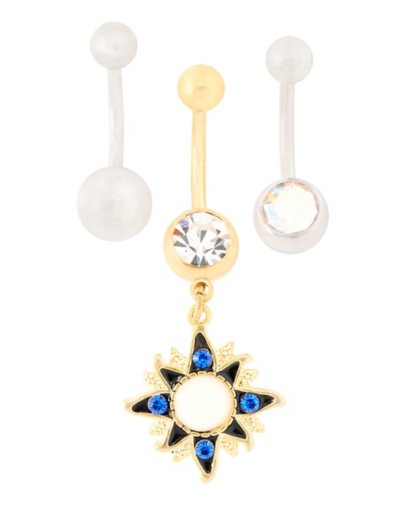 Buy Multi-Pack CZ Sun Dangle Belly Rings 3 Pack - Gauge for $16.99 at @ Spencersonline.com