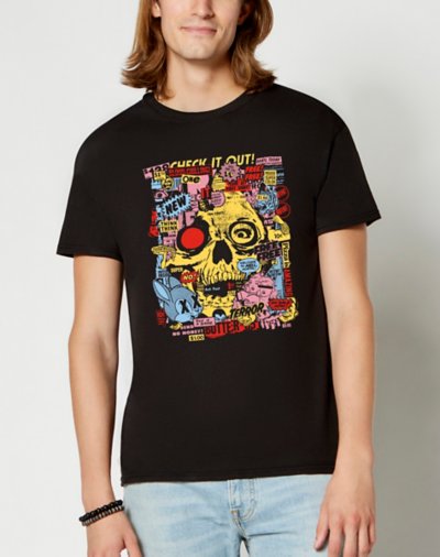 Buy Cut and Paste Skull Collage T Shirt - Adam Antium for $21.59 at @ Spencersonline.com