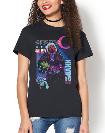 Wear eye-catching artwork designed by Keyla Valerio and you'll feel confident enough to break jaws. This dark and dazzling Jawbreaker graphic tee features a colorful character wielding a spiked weapon. So metal. Crewneck Short sleeves Material: Cotton Care: Machine wash; tumble dry low Imported This shirt is Unisex Sizing only For a fitted look, order one size smaller than your normal size Note: This item is print to order and may have a 1-2 day extra processing time.